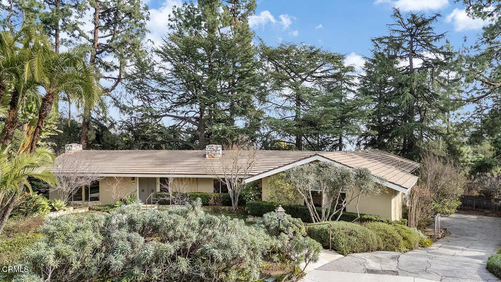 Tucked away at the end of a peaceful cul-de-sac, this stunning mid-century ranch home has been lovingly maintained by its original owner since 1960. Situated on a sprawling lot in the Alta Canyada neighborhood of La Canada Flintridge, this 4-bedroom, 4-bathroom residence offers a rare opportunity to own a piece of architectural history. Designed with classic mid-century elements--clean lines, wood-paneled walls, and several glass sliding doors--the home seamlessly blends indoor and outdoor living. As you enter, you'll be captivated by the home's distinctive architectural elements, including striking rock facades, inspiring wall coverings and timeless custom design treasures. Enjoy the tranquility of nature in the formal living room and dining room, as well as the refined details, wood details and rock fireplace. The bright and functional kitchen opens to a comfortable family room with fireplace, wet bar with custom shelving, and sliding doors to the large patio. There are four bedrooms on the main level, including a primary suite with a relaxing retreat, large closet spaces, bathroom, and refreshing balcony. The main level also includes a large laundry room, half bathroom, and full bathroom. The lower level living features a den/office with 3/4 bathroom and additional storage with access to the oversized two car garage. This sweeping backyard boasts the most magnificent deodar trees with grass lawns and multiple entertaining areas. The lush landscape surrounds the entire property with ample parking and convenient access to the garage. Experience the perfect blend of mid-century style and natural splendor in this extraordinary foothill retreat. This is a rare opportunity to own a classic mid-century home in a prime location and award winning La Canada schools!