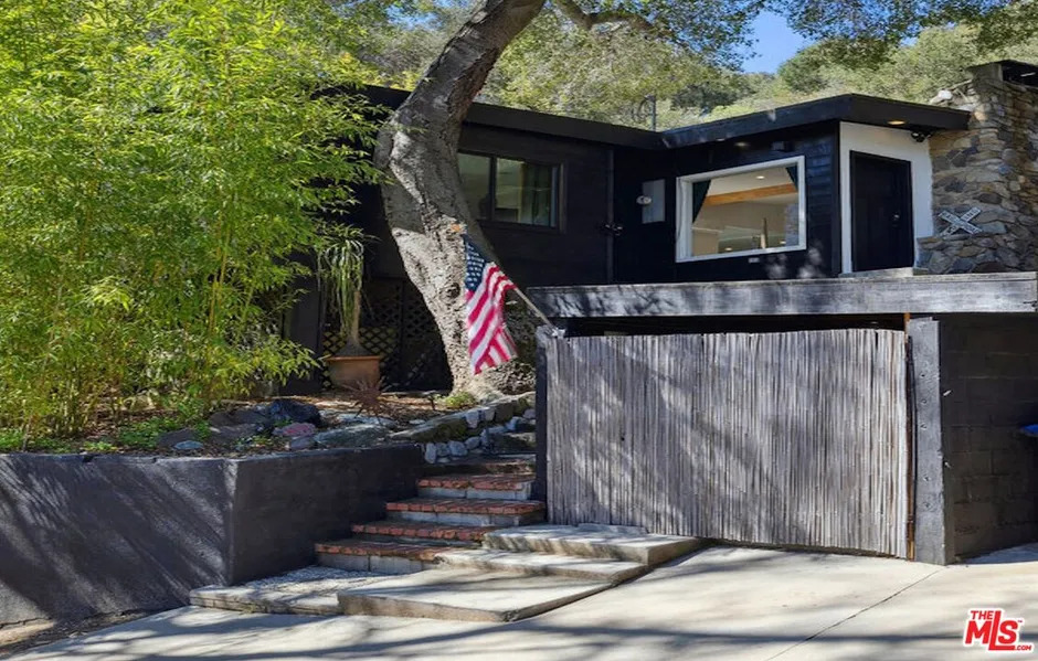 The Iconic Topanga Boxcar - A Unique Creekside Retreat. Discover the magic of Topanga living with this one-of-a-kind 1.8-acre creekside compound featuring the iconic Topanga Boxcar. This extraordinary property blends natural beauty with artistic charm, offering multiple living spaces designed for relaxation, creativity, and entertaining. The newly remodeled 2-bedroom, 1-bathroom main house is shaded by majestic trees and finished with warm hardwood floors throughout. The inviting living room features a hand-built stone fireplace and a stunning wall of glass that opens onto a private deck, creating a seamless indoor-outdoor flow. The open-concept kitchen has been thoughtfully refreshed with new cabinets, sleek countertops, and modern appliances, perfect for both casual meals and gourmet cooking. Each of the spacious bedrooms offers direct access to decks and patios, ensuring a constant connection to nature. The expansive private patio is an entertainer's dream, complete with an outdoor bar area, large deck, and a luxurious hot tub, perfect for hosting guests or relaxing beneath the stars, this serene space is designed to embrace the natural surroundings. Wander past the chicken coop to find a secluded guest house featuring a kitchenette and full bathroom ideal for visitors or as a creative studio space. The iconic Topanga Boxcar itself spans the creek and offers endless possibilities as a studio, workshop, or retreat. A separate private bathroom across the driveway near the covered parking area adds extra convenience. Nature at your doorstep with pathways winding through the property, leading to a picturesque creekside setting shaded by towering sycamores and oaks. This tranquil environment is the essence of the Topanga lifestyle, where creativity and calm coexist in harmony. Don't miss this rare opportunity to own a truly iconic piece of Topanga history. Also available for lease at $8,000 per month annually.