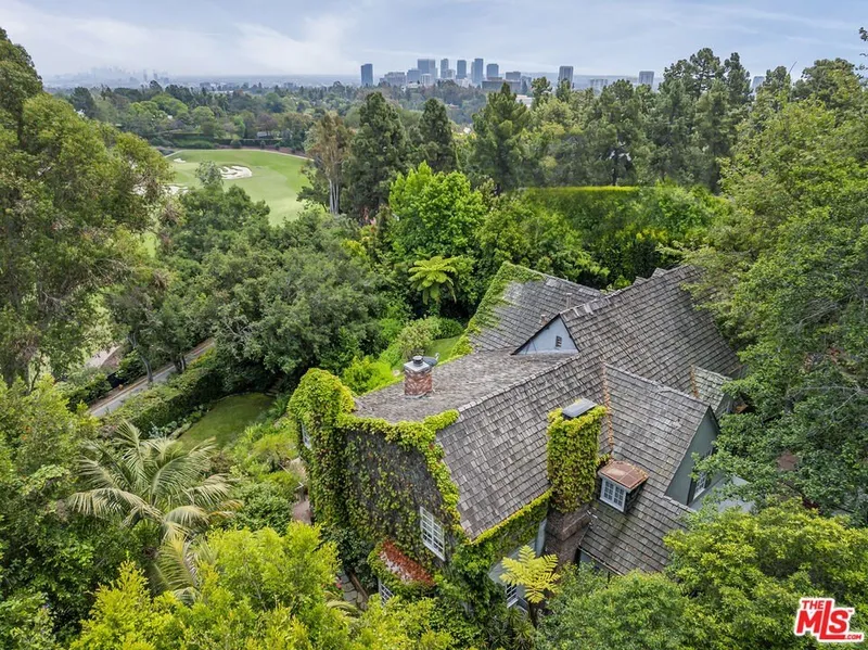 Limitless possibilities await in the city's most exclusive, highest-value enclave where the fortunate new owner can maximize return on investment by upgrading, expanding, rebuilding, or moving in right away and updating over time! This enchanting storybook estate is positioned on .65 prime acres of lush, verdant, golf course-facing grounds perched above the Bel Air Country Club's seventh tee with fantastic views of manicured fairways. On one of the most prestigious streets in Lower East Gate Bel Air, privacy gates conceal a hidden sanctuary enveloped by gardens and remarkable vistas. A variety of mature, swaying trees, vibrant vines, and flowering landscaping harmonize to form this whimsical private paradise in one of LA's most highly desired locales. A cobblestone pathway leads to the home's charming front entrance to welcome guests within. The formal living room is complete with a rich stone fireplace and built-ins as well as classic elements such as bay window and French doors. An adjacent parlor is light-filled, with exposed beams, traditional brick fireplace, and full L-shaped wet bar for cocktails and entertaining. The kitchen continues the home's warm character and is appointed with stainless-steel appliances, center island, and an abundance of cabinetry. The formal dining room is quite large, allowing the ideal space for intimate family gatherings and dinner parties, and a wood-paneled library/study features built-ins and fireplace. The spacious primary suite looks out to the rear grounds from its private balcony and includes a lavish spa-like bath and changing area with makeup station. There is also a screening room, gym/yoga studio, and dry sauna. Outside, relish numerous magical spaces such as a trellis-covered outdoor dining room with barbecue, lagoon-like pool and spa, sunny patio with resort-style retractable awning, large grassy yard, calming water features, terraces, gardens, and more. There is also an expansive brick motor court for many vehicles. Welcome to one of Bel Air's most prized streets just moments to the heart of Beverly Hills, the very best of the Westside, and all Los Angeles has to offer.