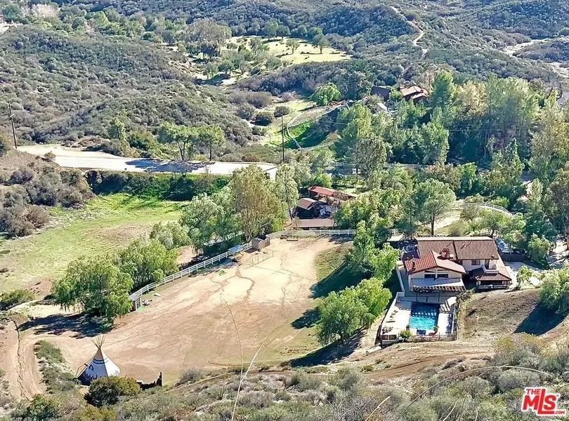 Tucked away at the end of a long, private driveway, this rustic residence offers an extraordinary opportunity across 5 acres of expansive, flat land an unparalleled offering that could never be replicated today. The entire property is accessible by car, leading to cleared, terraced acres framed by mature trees and features a guest house, rustic barn and horse rings, creating a serene and private retreat. Perched at the top of the driveway, the home ensures complete seclusion. Its rustic charm is showcased through original rock fireplaces, sourced from the property itself, and intricate woodwork that enhances the space. The layout is designed for seamless living, with the formal living room flowing effortlessly into both a cozy den and a spacious family room, each connecting to the kitchen. All main living areas open to the lush gardens and inviting pool, providing a perfect balance of indoor and outdoor living. Upstairs, the primary suite features a tranquil sitting room, along with three additional bedrooms and a bath. While this home offers a sense of retreat in the mountains, it's just a short 5-10 minute drive to both the heart of Malibu and the 101 freeway. With endless potential, this is your opportunity to create a bespoke estate in one of the most coveted locations.