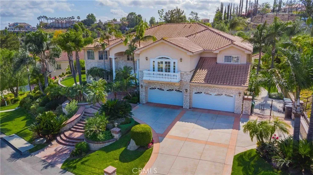 A dramatic two-story grand entry with a crystal chandelier welcomes you. Wide double staircases leading to different sections of the upper level set an impressive tone upon arrival.
