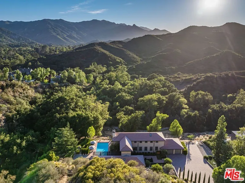 This spectacular Mediterranean home surrounded by the Santa Monica Mountains is perched on 2.8 acres and is located on an exclusive gated street in Monte Nido with only two other luxurious estates. This magical neighborhood is a hidden gem with a small-town feel, community events and friendly atmosphere. Perfectly situated near Malibu State Park, Back Bone Trail and minutes to Malibu beaches, Calabasas shops and dining, and the 101. Here, you will enjoy nature, mountain views for miles, breathtaking sunsets, soaring hawks, mornings with a sea of clouds pouring in over the mountain-tops and the trickle of a seasonal stream. The property features a heated swimming pool and hot tub, view terrace, mature trees including oaks, California sycamores, orange and plum. A beautifully landscaped courtyard welcomes you in with a fountain and fishpond. The doors open to high ceilings with dazzling Murano hand blown glass lights and soothing light hard skived white oak hardwood floors. An inviting living room offers a peaceful seating area for relaxing and enjoying the mountain views with glass doors opening to a large terrace with seating and dining areas. Inside offers an elegant dining room with windows to the views and stunning hand blown light fixtures reminiscent of the convergence of sky and ocean in Venice. A light and bright kitchen overlooks the mountains and terrace with BBQ, and features an island, Thermador appliances, and is open to a seating area with surround sound television. Retreat to the first floor primary suite with views of the sparkling pool and hot tub. The spa-like bathroom offers a separate tub, shower, and walk-in closet. A sizable second bedroom/office and full bathroom is also on the first floor. Upstairs you will find three additional guest bedrooms all with spectacular views and two full bathrooms, as well as the laundry room and bonus storage room. The home has been meticulously upgraded with Carlisle wide-plank solid oak hand-skived hardwood floors, new Lennox Signature HVAC system, Farrow and Ball Paint through-out, new AV system with TVs, speakers and control system, new pool equipment and cover, wine refrigerator, Wilson Repeaters, whole house water filter, tankless heater and the list goes on! Two car attached garage and central vac. Within the award winning Las Virgenes School system and close to Viewpoint and Muse private schools, and Pepperdine University.
