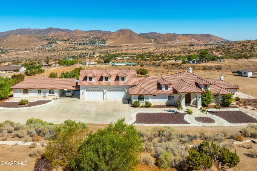 Amazing Acton property on nearly 10 acres with million-dollar views. Main home is 3,722 sq. ft. offering 4 bedrooms plus office (with closet- optional 5th), 3 baths, alder wood cabinets throughout, spacious kitchen with pantry and hide-away spice racks, fireplaces in great room and master suite, large laundry room, and upstairs game room with storage. Double-stucco Old World Style exterior, fiberglass front door, a 1170 sqft. 4-car double insulated garage. Detached 799 sq. ft. granny house includes 1 bed, 1 bath, full kitchen, dining area, living room, and private patio. Large covered patio, usable land, and versatile layout make this property ideal for multi-generational living or income potential.