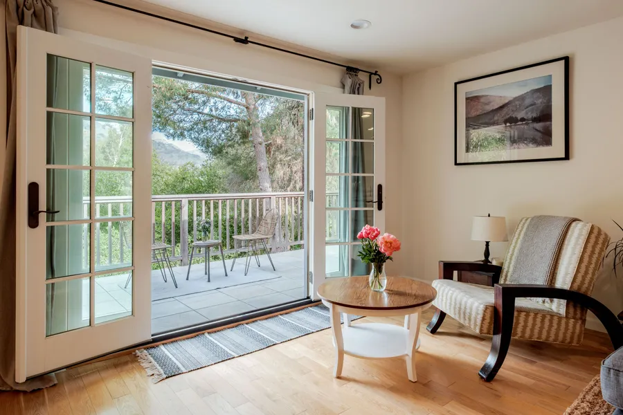 Improved price comes with extra lot over 20K sq ft of lovely yard with deck and Views. This beautifully remodeled three-bedroom, two-bath retreat in the heart of Topanga offers the ideal blend of canyon charm, modern comfort, and peaceful outdoor living all in a move-in-ready package. Set in one of Topanga's most desirable microclimates, the location is truly unbeatable: just seconds from the beloved Mimosa Cafe and natural food store, and only minutes to Malibu's beaches, Santa Monica, and the San Fernando Valley. Surrounded by mountain views and graced by a seasonal creek, the home creates a seamless connection to nature. French doors open from the living room to a porcelain-tiled wraparound deck, perfect for relaxing, dining, or simply soaking in the serenity. Inside, the open-concept living, dining, and kitchen areas are filled with natural light and designed for effortless everyday ...