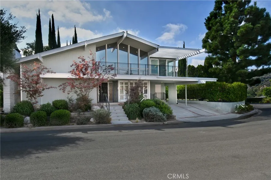 Beautiful Mid-Century Modern high in the hills of Studio City, this midcentury-inspired architectural has been remodeled with designer touches throughout. Capturing fantastic views of Studio City and the hillsides beyond, the 5-bedroom retreat features light, bright interiors, a formal dining room and a living room with soaring cathedral ceilings and a wood-burning fireplace. The remodeled chef’s kitchen boasts a center island, built-in dining nook, Quartz counters, tile backsplash, shaker cabinets, a walk-in pantry and Thermador/Miele appliances. Sliding doors open to the entertainer’s backyard with a pool, alfresco dining area, manicured gardens and terraced patios. Bedrooms and baths include the primary suite with dual closets and a double rain shower. Features include an office, leased solar and a sound system, located in the Carpenter school district, moments from the Fryman Canyon ...