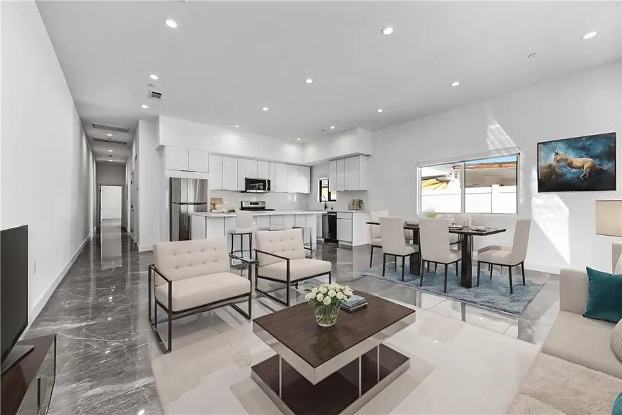 Welcome to this beautifully remodeled residence offering modern comfort and style in the heart of Van Nuys. This spacious home features 3 bedrooms and 3 bathrooms, thoughtfully updated to combine contemporary finishes with functional design. The interior boasts 10-foot high ceilings, creating a bright and open atmosphere throughout. The kitchen is equipped with brand new appliances, sleek cabinetry, and ample counter space, ideal for both everyday living and entertaining. Each bathroom has been fully updated with quality materials and modern fixtures, and an in-unit washer and dryer provide added convenience. Every detail has been carefully selected to enhance comfort and aesthetics—from the new flooring and lighting to the clean, modern finishes. Situated in a highly desirable Van Nuys neighborhood, this property offers easy access to local dining, shopping, parks, and major transportat...