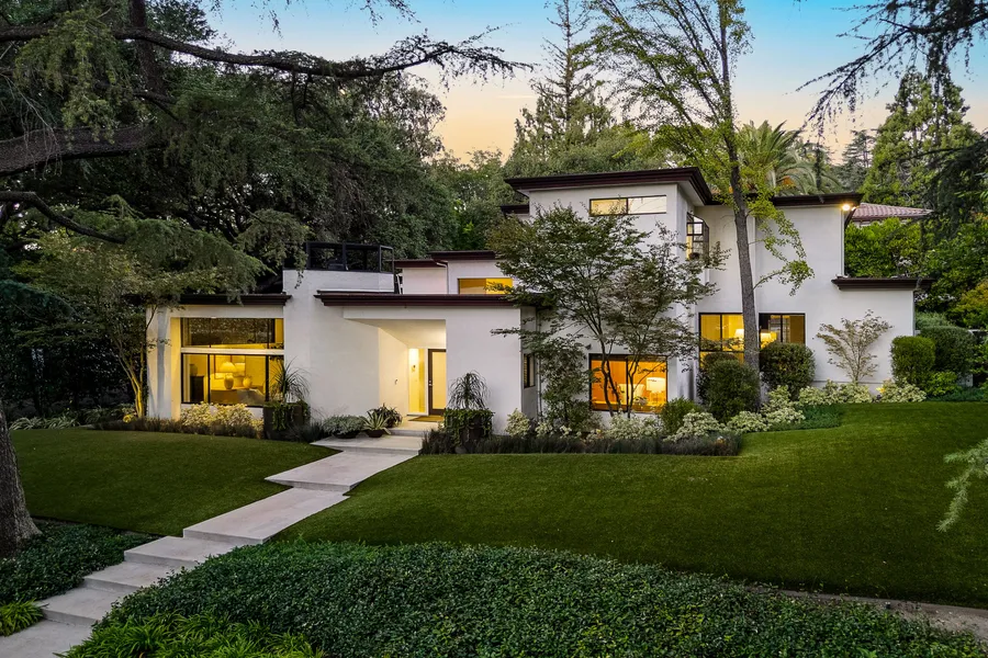 Framed by majestic deodar trees, this sculptural contemporary home blends architectural sophistication and warm California modern living. Its striking frontage and manicured landscape offer instant curb appeal, while expansive glass walls fill the interior with natural light, blurring the line between indoors and out. Thoughtfully designed to frame tranquil garden views, each space embraces its lush surroundings, creating a serene, resort-like atmosphere where elegance and nature coexist in harmony. Located in one of the area's most desirable neighborhoods and within the award-winning La Cañada Unified School District, this move-in ready home combines comfort, functionality, and design excellence. A flowing floor plan unites open gathering areas with private retreats, creating a seamless blend of livability and sophistication throughout. Four spacious bedrooms plus a flexible office with...