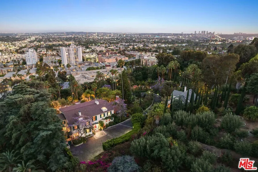 This legendary compound has been passed down through generations of Hollywood royalty. At the top of La Brea Terrace, behind 2 gates, is a quarter-mile-long driveway that winds up to 3 separate residences, overlooking all of Los Angeles and Downtown. The property consists of 6.5 acres of mature landscaping with wonderful trails that meander around the property. The privacy offered by the acreage and hillsides is unparalleled, enhanced by an alarm system and security cameras for increased security. The primary home (6,700 ft, 4 beds upstairs) is a classic and charming villa with plentiful entertainment space and wonderful indoor-outdoor California flow. The secondary home (3,100 Ft, 2 Beds) is light and bright, featuring its own private patio and a small enclosed yard. The 3rd structure (not shown In photos) (500 ft, 1 bed) is an apartment situated above numerous parking garages. Only 2 blocks north of Sunset and a 5 minute walk to the entrance of Runyon Canyon.