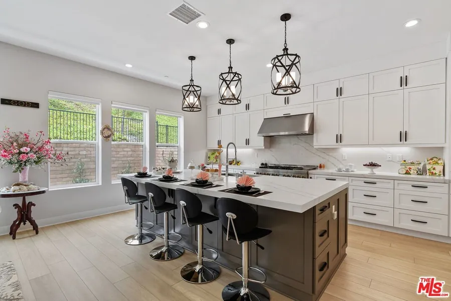 Located within Montebello's prestigious guard-gated Metro Heights community, this thoughtfully curated Toll Brothers residence redefines modern hillside living through an effortless blend of contemporary design, lifestyle flexibility, and resort-style amenities. Set across three levels, the Outlook Elite offers a balance of refined materials and inviting spaces, designed as much for daily comfort as for elevated entertaining. A soaring three-story foyer welcomes you into a home where every space has intention. Just beyond, the living room centers around a sleek modern fireplace, framed by natural light and warmth. French doors open directly to the outdoor living area, creating the perfect setting for al fresco dining, weekend lounging, or gathering under the stars. The kitchen, thoughtfully positioned at the heart of the home, features clean lines and high-end JennAir appliances. Quartz ...