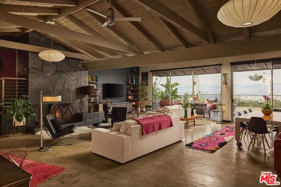 Perched at the crest of Laurel Canyon just off Mulholland, this private mid-century retreat offers relaxed Hollywood Hills living with sweeping views across the entire San Fernando Valley a dazzling panorama of twinkling lights at night. Warm, stylish, and undeniably hip, the home feels instantly welcoming. The layout includes four bedrooms and three bathrooms, with an oversized living room anchored by a wood-burning gas fireplace. The eat-in kitchen and breakfast nook flow naturally together, and the home is equipped with high-speed internet and six smart TVs. A generous deck spans the length of the house, capturing expansive 180-degree valley and skyline views magical at sunset and spectacular after dark. The heated pool and outdoor seating areas create a private, peaceful oasis perfect for relaxing or quiet entertaining. The property is gated, wonderfully private, and set on a quiet s...