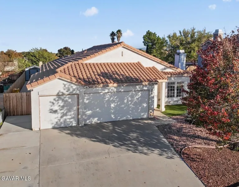 This 3 bedroom, 2 bathroom single story house with a mountain view is move-in ready! Light and bright inside, the home features a large family/dining room with gas fireplace, a plethora of windows and plantation shutters. Contemporary faux wood tile flooring elevates the kitchen and nook. The primary bedroom suite features a private bathroom with separate tub and shower, double sinks and a walk-in closet. Additionally, the guest bathroom has been updated and remodeled. A convenient indoor laundry room comes with an INCLUDED newer LG ThinQ washer and dryer!! The spacious 3-CAR GARAGE is perfect for storage or extra vehicles and includes a newer water heater and pressure regulator. The backyard has a covered patio, concrete slabs, rock landscaping, as well as a gated dog run. A newer 8'x12' TUFF SHED is also included for additional storage. Located in an established neighborhood (with no neighbors across the street), the home is close to Barrel Springs Elementary, a California PBIS Silver Implementation Award winning school. Fast & easy access to a main road is only a 2 block drive to Pearblossom Highway, near CA14.