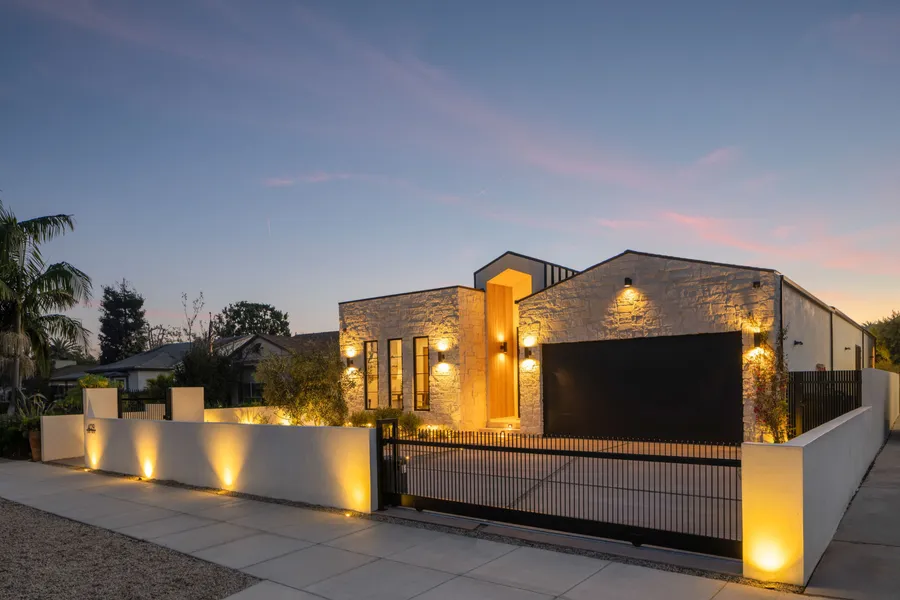 Fazeli Homes presents a luxury, bespoke residence in Mar Vista's coveted Oval set along a wide palm-lined street, this newly built custom home blends volume with sophisticated design. A gated entry leads into a dramatic 14-foot lime washed vaulted foyer and a breathtaking great room beneath soaring 15-foot cathedral ceilings. The chef's kitchen features custom-paneled Thermador appliances, double bullnosed Perla stone counters, an XL walk-in pantry, flowing effortlessly into a dining area framed by a bold ledger-stone accent wall and a fire sided living room complete with built-ins, and expansive sliding glass doors. An extension of the home itself, the backyard boasts a barbecue island, outdoor dining, and a covered fireplace lounge, all set against a lush backdrop of mature ficus providing complete privacy. Privately positioned at the back of the property, the primary suite provides a ...