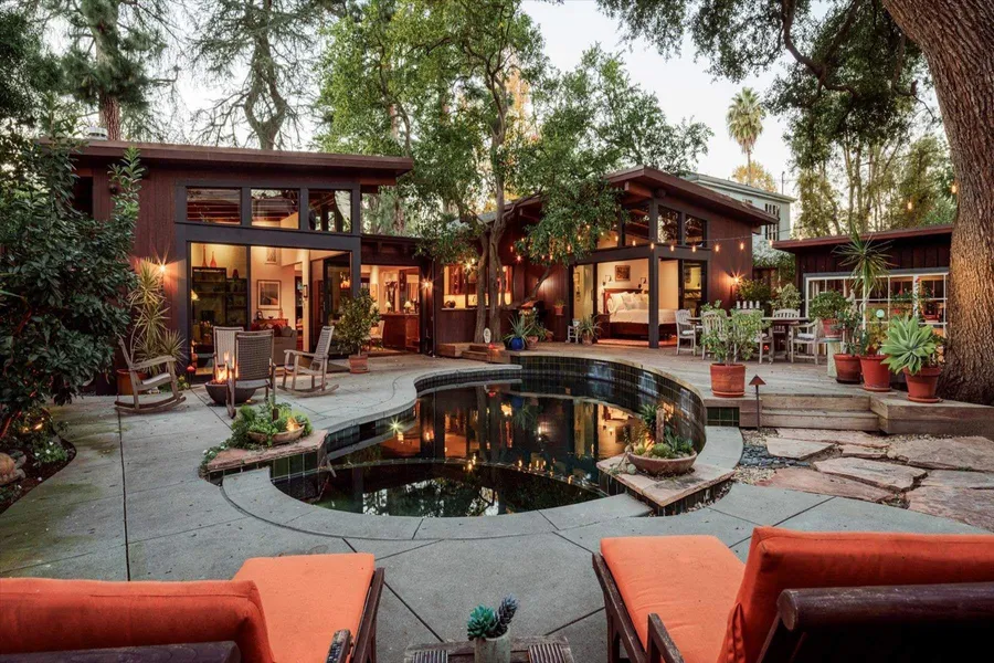Set on a tranquil, tree-lined street, this striking Architectural Modern residence blends contemporary design with natural beauty and effortless California living. First time on market in 30 years, the owners have transformed this surreal urban compound with sun-filled interiors showcasing luxe oak wood flooring throughout; creating an elegant and cohesive foundation for refined daily life. The open living, dining, and kitchen spaces are thoughtfully designed for elevated entertaining and comfortable everyday living. The chef's kitchen serves as the heart of the home, appointed with custom cabinetry, premium appliances, and an oversized island ideal for hosting and gathering. Walls of glass open to an enchanting backyard retreat framed by mature Deodar Cedar trees, towering Canary Island Pines, and a majestic, time-honored Oak that anchors the landscape with presence and tranquility. The...