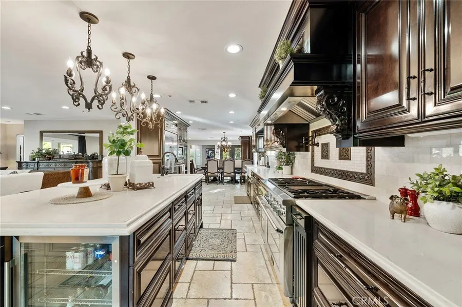 At the heart of the home, the chef’s kitchen impresses with a large center island, seamless flow into the dining and family rooms, and stainless steel Thermador appliances. Custom cabinetry by Norm Tessier and multiple ovens elevate the space, making it ideal for hosting gatherings of any size.