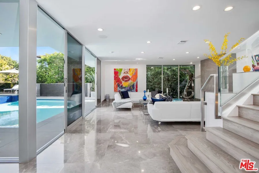 Experience the epitome of luxurious living, nestled adjacent to some of the wealthiest individuals in the world amidst a prestigious enclave that includes Beverly Hills and Holmby Hills. This exquisitely designer-furnished, contemporary residence is a remarkable architectural triumph that rises gracefully above the city lights, offering breathtaking panoramic views. This opulent masterpiece features expansive living spaces with unparalleled finishes, all thoughtfully designed for seamless entertaining. The open floor plan boasts soaring ceilings and expansive sliding glass walls that integrate indoor and outdoor spaces. This leads to resort-style amenities, including a magnificent pool, spa, and multiple entertainers' terraces embellished with cascading waterfalls. A grand great room, anchored by a sophisticated fireplace, transitions effortlessly to a fully equipped bar complete with top-of-the-line temperature-controlled wine storage. This space flows into a stunning dining room and a state-of-the-art chef's kitchen, outfitted with Miele appliances and Poggenpohl cabinetry, perfect for culinary enthusiasts. The lavish primary suite offers a private terrace with captivating views, extensive showroom-quality closets, and exquisite dual bathrooms. This extraordinary high-tech smart home retreat includes three generously sized VIP guest suites, a cutting-edge media room with sweeping vistas, and a fully equipped gym featuring a dry sauna. OPTION TO BUY WITH SELLER FINANCING AVAILABLE.