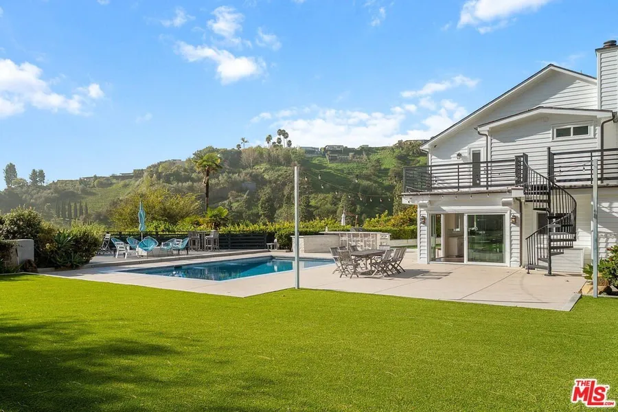 Set on an acre, this is one of the largest and most desirable sites in Marquez Knolls. This rare, park-like property offers expansive flat grounds, hillside privacy, mature trees, pool, hot tub, outdoor kitchen, and entertainer's deck with fire pit - all with canyon and ocean views to Catalina and Palos Verdes. Privately gated at the end of a cul-de-sac, this two-story East Coast Traditional was renovated in 2009 by Albino Construction and feels a world away from the burn areas in the Palisades. Grand entry with sweeping staircase, skylight, and exposed beam ceilings opens to formal living and family rooms with fireplaces, French doors, and custom built-ins. Gourmet kitchen features top-tier appliances, center cooktop, breakfast area, ocean views, and direct yard access. Separate studio/media room with murphy bed and full bath provide flexible living. Primary suite includes hardwood floo...