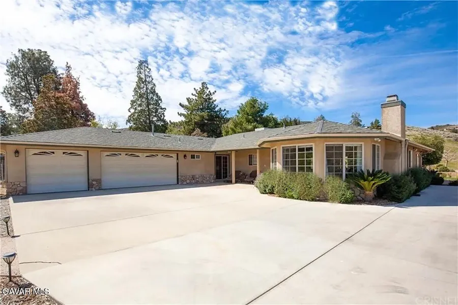 Gorgeous, updated single-story custom ranch home in the heart of Leona Valley, set on 2.39 acres zoned for horses and livestock--with a chicken coop already in place! This highly upgraded 4-bedroom, 3-bath residence offers breathtaking valley and mountain views and the perfect blend of modern luxury and country living. Extensive upgrades include a fully paid solar system, city and well water, a tankless water heater, quartz countertops, a spacious breakfast bar, wine refrigerator, deep well sink ideal for pots and pans, under-sink instant hot water, and upgraded appliances throughout. The dining room showcases beautiful built-in cabinetry, offering both elegance and functional storage--perfect for entertaining. The formal living room features a cozy gas fireplace and elegant bay windows that fill the space with natural light while framing stunning mountain and valley views. Designed for comfort and convenience, the home also includes an entertainment-ready system with integrated wiring and outdoor speakers, as well as a fully automated keyless entry system and security cameras thoughtfully installed throughout both the interior and exterior of the property. The spacious primary suite opens directly to a covered patio complete with a fire table and TV--an ideal retreat for relaxing and enjoying the peaceful surroundings. Additional highlights include an attached three-car garage, a detached two-car garage equipped with a full-length workbench and window air conditioner, and gravel RV parking with 220-volt service, providing durability and convenience for recreational vehicles. The property also features both a large storage shed and an additional small shed--offering ample space for tools, equipment, hobbies, or agricultural use. A rare opportunity to own a beautifully upgraded property that seamlessly combines modern technology, luxury features, functional outbuildings, and open-space country living with truly spectacula