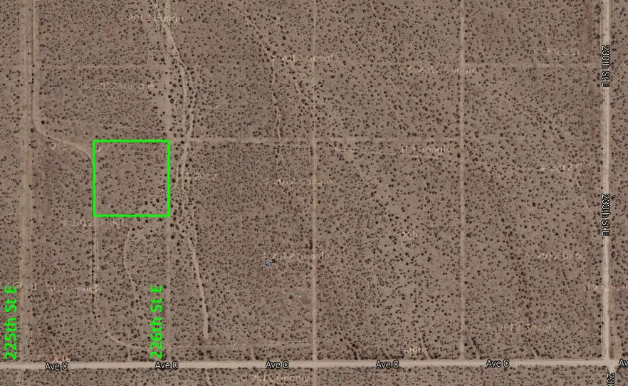 Directions: From Lancaster, head east to the intersection of 200th Street East and Avenue G. From this intersection, there are various ways to get to the property and this is my preferred route (it helps to use your odometer for guidance due to inconsistent street name signage in the area). Begin at 200th Street East and Avenue G. Head north on 200th Street East 4 miles, then turn right on Avenue C. Take Avenue C east for 2.6 miles to 226th Street East, then turn left on 226th Street East. Take 226th Street East north approximately 610 feet, which will take you to the southeast property corner. From here the property extends approximately 330' to the north and approximately 330' to the west.