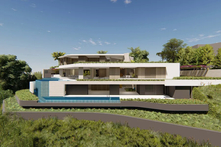 Situated on an ultra-private & quiet view site in Beverly Hills, this 1.1-acre homesite captures sweeping views across the treetops to Downtown Los Angeles. Moments from Trousdale Estates & The Beverly Hills Hotel, the site features an approximately .4-acre flat pad, offering the rare opportunity to build a spectacular architectural masterpiece in one of the citys most coveted locations. The homesite comes with purchased, approved, permitted architectural plans by SAOTA & Studio Marco Piva a gated, contemporary estate that harmonizes with nature & emphasizes the fantastic views. Plans call for an approximately 13,619-sq-ft residence with 3 stories of exquisite living space, including living, dining & family rooms, chefs kitchen & infinity-edged pool. The lower entertainers level features a theater, game room, wine room, fitness studio, lap pool & spa. Features include an elevator, auto g...