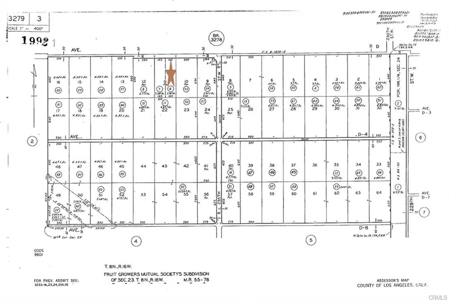 Land for sale in Los Angeles County that has over two acres and it's priced under $16,000 an acre. It's an easy commute to Lancaster, Santa Clarita, even Los Angeles! Land in Los Angeles County, in the western portion of the Antelope Valley called Fairmont. Invest in beautiful spacious community! Large, flat, rectangular vacant land (2.37 acres , with 165 feet of frontage on south side of West D Avenue, which is paved Highway 138 West and it's about 3 lots from the corner of 235th) There are several ranches in the area. Legal description : FRU1T GROWERS MUTUAL SOC1ETYS SUB OF SEC 23 T 8N R 16W E 165 FT EX OF RD OF LOT 11. Parcel number is 3279-003-006. Latitude and longitude coordinates are 34.773958,-118.548191