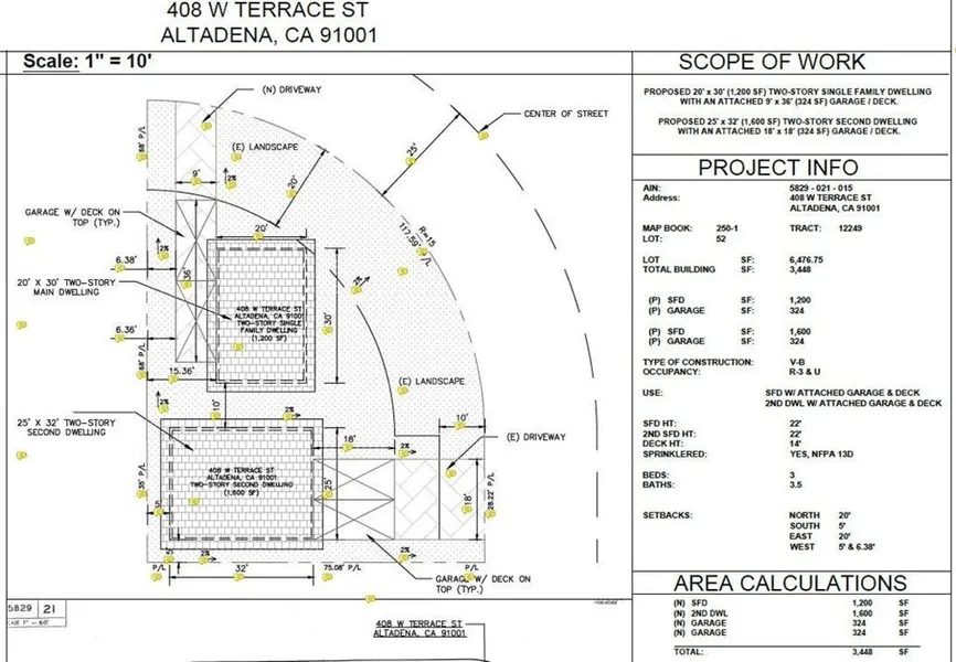 Unique opportunity in Altadena! This property sits on a spacious lot where the original home was lost in recent fires. The parcel comes with an approved plot map / site plan and drafted architectural plans for two new single-family residences.