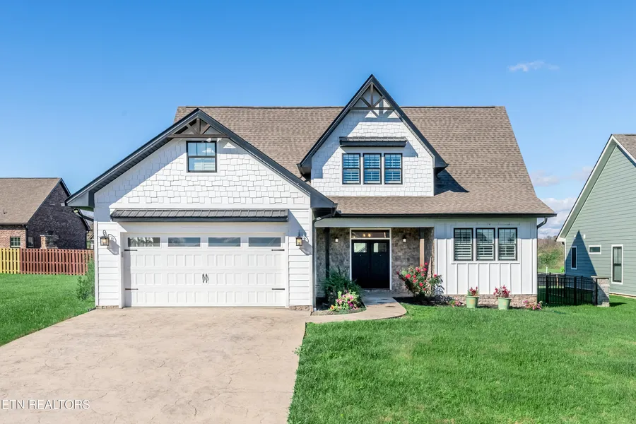 Welcome to your dream home in the sought-after Lighthouse Pointe subdivision of Loudon, Tennessee! This stunning property is nestled in an upscale waterfront community on the banks of the Tennessee river offering a perfect blend of luxury, comfort, and convenience. This custom-built/open concept modern craftsman home features 2690 sq. ft of living area, oak hardwood floors throughout, tiled bathrooms, 4 bedrooms, 3 full bathrooms and 1 1/2 bath. The double front doors open into a large living space with gas/stone fireplace and custom bookshelves. Large glass sliding doors open out onto the covered back patio. The spacious kitchen which includes an ample sized island with a double drop-in stainless sink is adorned with a stunning white quartz countertop. The white cabinetry, black granite countertops, and white subway tile backsplash with stainless LG appliances help create a bright and f...