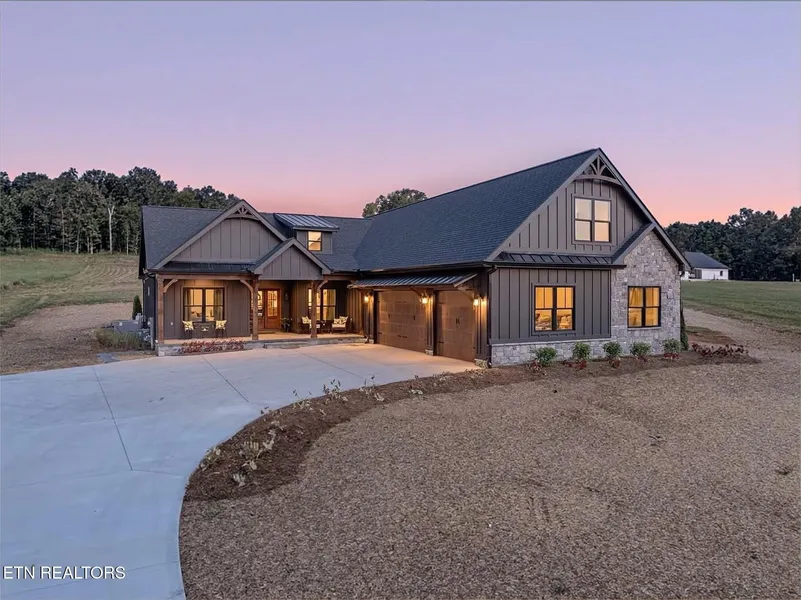Welcome to 5910 John Drive, a true showpiece offering nearly 3,500 square feet of thoughtfully designed living space with breathtaking mountain views and luxury details throughout. From the moment you arrive, this home makes a statement. The exterior is wrapped in hardie siding, accented with custom-built timber awnings, professional landscaping, and permanent trim lighting that allows you to celebrate every season and holiday in style. A large, stamped patio overlooks the expansive backyard, creating the perfect setting for outdoor entertaining or peaceful evenings at home, and don't forget the HUGE 3-car garage. Inside, you'll find a seamless blend of elegance and comfort. The open concept layout showcases luxury vinyl plank flooring throughout, 9-foot ceilings, and custom trim details. The kitchen is a true chef's retreat with 42-inch upper cabinets for abundant storage, a pantry with custom-built shelving, quartz countertops, a built-in microwave, stainless steel appliances (including refrigerator), a gas range, and even a pot filler for convenience. The main level offers three bedrooms and two full bathrooms, including the primary suite. This private retreat is adorned with custom wainscoting, patio access, a gorgeous en suite with designer finishes, and a huge walk-in closet. Upstairs, you'll discover a second primary suite with its own en suite bath and walk-in closet, perfect for guests or extended family. A spacious bonus room provides endless flexibility, from media space to playroom and features a charming reading nook with custom built-in bookshelves and a desk. An additional half bath completes the upper level. Every detail has been considered in this luxury home, from timeless finishes to modern conveniences, including an encapsulated crawlspace for efficiency, durability, and peace of mind. With its incredible curb appeal, versatile layout, and mountain views, this Greenback property is truly one-of-a-kind.
