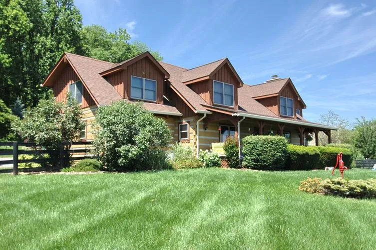 32 ACRE PRIVATE EQUESTRIAN FARM W/SPECTACULAR MT & PASTURE VIEWS - 4+ BED, POST & BEAM 2 LEVEL HOME w/HAND HONED BEAMED CEILINGS, HEART PINE FLOORS, STONE WB FP, 3 MASTER SUITES, 50' SCREENED BK PORCH, FRONT PORCH, PARK LIKE SETTING W/TRAILS, LANDSCAPING, DRY STACKED STONE WALLS, NEW HVAC, APT SUITE ABOVE DETACHED GARAGE. & SO MUCH MORE ONLY 5 MIN TO GREENWAY - APPT ONLY PETS.