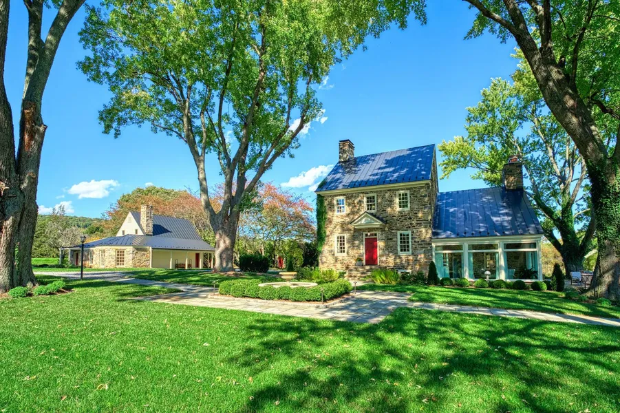 Breathtaking with superb colonial architecture on twenty-five sweeping Blue Ridge acres, Hearthstone is a home of history, telling stories connecting a King, a President, plantation life, and war-time cautionary tales. Exquisitely renewed and reimagined since its mid-1700s origins, architects and craftsmen alike have each ensured preservation of the propertys long memories, while creating access and modern amenity for memories yet to come. Today, the main house is an elegant masterpiece of award-winning design lined by original hardwoods, exposed hand-hewn wood beams, graceful trimmings, recessed Shaker cabinetry, standing-seam metal roof, and charming walls of stone. Caring for modern life, youll appreciate new utilities, serene bathrooms, open rafters, and replaced windows of Appalachian views. Warm holiday traditions near fireplaces featuring distinguished mantles, revisit best loved reads in the sunroom overlooking beautifully laid botanicals, host dining room meals near the original kitchen hearth, and let guests gather for conversation in the cheerful pomegranate-hued kitchen where professional-grade appliances, endless cabinetry, and luxurious finishings inspire. While the lower levels radiant heat floors create a cozy space for casual evenings in, guest stays, and wine room tastings, outside, stone paths and patios welcome party guests where the fountain, manicured gardens, and wildlife on the pond add atmosphere. While touring, visit the sunny fully independent two-bedroom guest house, detached garage with loft storage, leasable three-acre tenant house property, and dont miss hearing of the propertys captivating past.