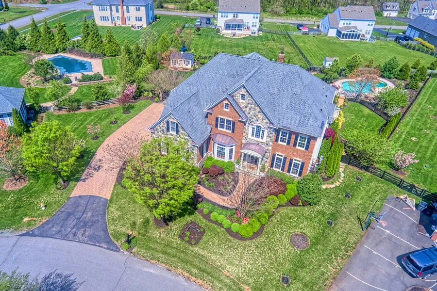 This former model home in Historic Selma Estates was built by Winchester Homes in 2008 & has the FEEL of a vacation property without the NEED for a plane ticket to get there! Starting from the outside the curb appeal of this home is AWESOME! Lots of mature landscaping adorns the house, which is situated on an eyebrow off Garriland Drive., a street that meanders its way past several horse properties leading to London Council Lane, then continues to Historic Selma Mansion and ends at the edge of the Raspberry Falls Golf Course. The amply spaced driveway can fit several vehicles & a large 3-car-garage can accommodate a few more, plus lots of other stuff (bicycles, kayaks, extra refrigerator, work bench, etc.) Walk around to the back of the home & you will find a fenced-in back-yard, screened-in porch, patio with an outdoor fireplace, a gardening shed, a play-ground, and an outdoor heated swimming pool. The interior of the home has over 7,000 sqft of finished space, includes 4 bedrooms on the 2 nd level, and 6 bathrooms total. Each of the rooms has upgraded molding and paint & there are plantation shutters throughout the property. The master bedroom has a massive bathroom with large walk-in-shower plus three walk-in-closets. The mostly finished basement includes a bar, movie room, workout room, gym, and playroom, plus storage space and access to the backyard.