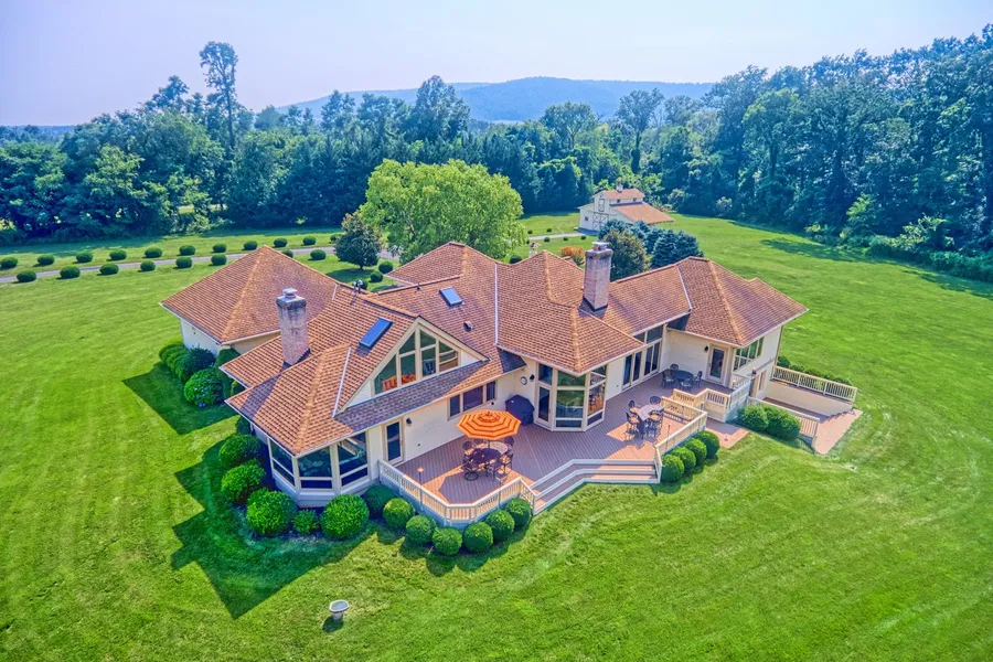 Built in 2000, this unique home in Bluemonts Boxley Farms community was inspired by a waterfront property design which provides its owners with outstanding panoramic views of its lush, country setting. Sited centrally on 16.1 acres, the window array at the rear faces northeast so that the morning and early afternoon sun fills the living areas with natural light. The home has four bedrooms, including the primary bedroom and attached bathroom plus a second primary bedroom and attached bathroom, all on the entry level. The third and fourth bedrooms on the second level share a bathroom. The spacious kitchen with breakfast area includes a Wolf 5 burner propane cooktop with Gaggenau built in steamer, a copper Broan exhaust hood, Sub Zero refrigerator/freezer with cabinet doors and double wall ovens. The far end of the kitchen has a pleasant family room with wood burning fireplace and large oct...