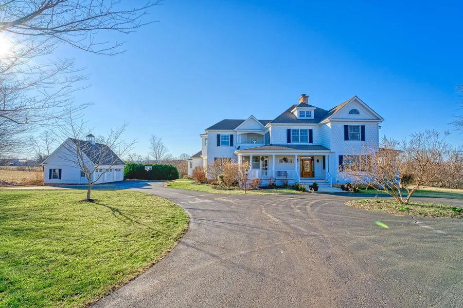 This beautiful 8,000 finished square foot custom home, known as Belmar Farm, was built in 2005 by local homebuilder, University Homes. The house is located centrally on a gorgeous 24.25 acre parcel, with unparalleled views of the Blue Ridge Mountains to the west. The house was artfully designed and sited so as to provide impressive vistas from the delightful three-sided wraparound porch. The three-car garage is separated from the main house by a paved motor court. Inside, this home has five bedrooms above grade including a main level primary bedroom and attached primary bathroom. The kitchen is a chefs delight with high quality appliances including a Wolf propane gas range, and flows nicely to the large breakfast room, dining room and living room. Beyond that extends the family room with adjoining study, all within easy reach of the porch on which to relax and take in the surrounding countryside. The large self contained lower level, with full kitchen and two bonus rooms, which could be used as bedrooms, also includes an impressive family room, separate den and exercise room, all with walk out to the rear of the house. The four second-level bedrooms include two full bathrooms, one of which is a Jack and Jill, connecting bedrooms three and four. An elevator shaft rough-in connects all three levels, ready for a future elevator, if so required. The scenery from the property is quite exceptional. Surrounded by other properties also in conservation easement, ensuring that development will remain strictly limited in perpetuity, means that these views will endure. Belmar Farm is also a Certified Audubon Wildlife Sanctuary, helping birdlife to thrive and grow in Virginia.