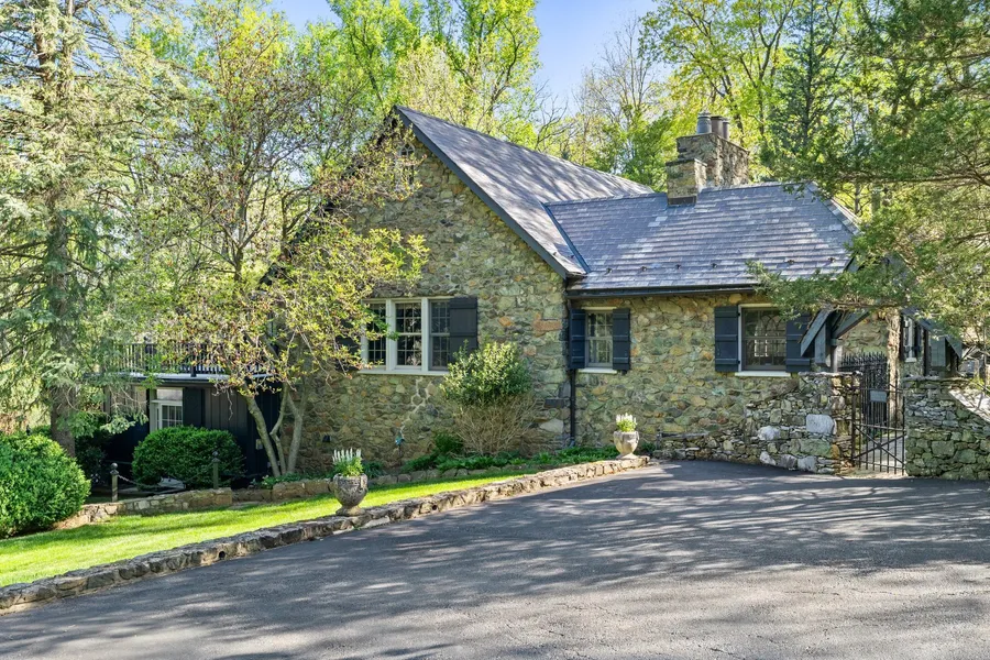 The grounds are equally captivating: mature gardens, wrought-iron fencing atop stone walls, a sculpted yew hedge, rolling lawns cascading to a forest and stream, and a wisteria-covered porch perfect for al fresco entertaining. Deer, birdsong, and endless valley views create a setting of incomparable peace and beauty.