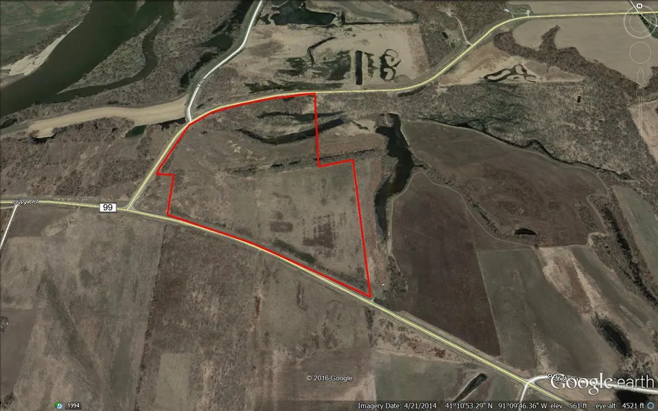 Recreational dream property! Timber & CRP ground with esy access from Highway 99. 61.5 acres M/L with tons of potential. Less than a mile East of Wapello.