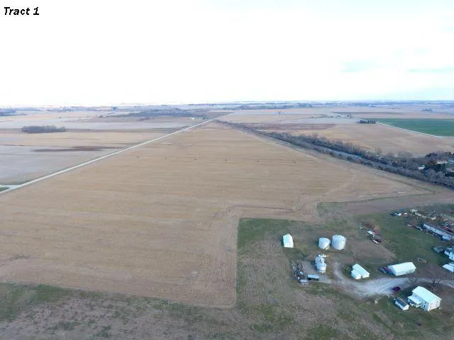 This tract includes (2) approx. 10,000 bu. grain bins with walkup stairway, (1) approx.. 8,000 bu. grain bin with electric dryer and walkup stairway, and an older shed.