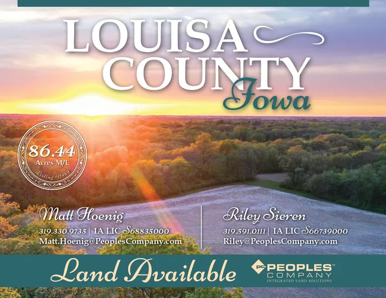 Research Parcel InformationFrom Columbus Junction High School in Columbus Junction, IA head southeast on Flat Iron Drive. In less than half a mile turn right onto New Heritage Trail. Within 200ft more or less there will be a 2-track path heading east on the left-hand side. Use this path to enter the farm. Look for Peoples Company Signs.