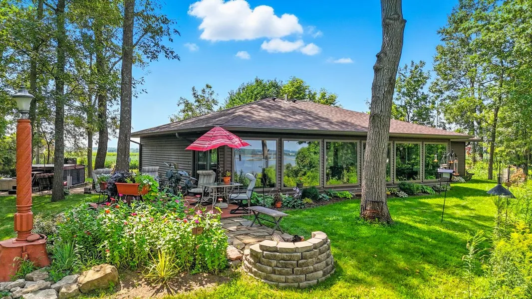 Newly built in 2021, this impressive home overlooking Lake Odessa has unbelievable views of the lake, surrounding wildlife, and is nestled on 9.58 acres of wooded shoreline. 2 bedroom suites, open concept living room / kitchen, deck/patio with firepit, hot tub, extensive landscaping, and a couple small sheds for storage. Built to be energy efficient, the home is all electric with air to air heat pump. You must see to appreciate.