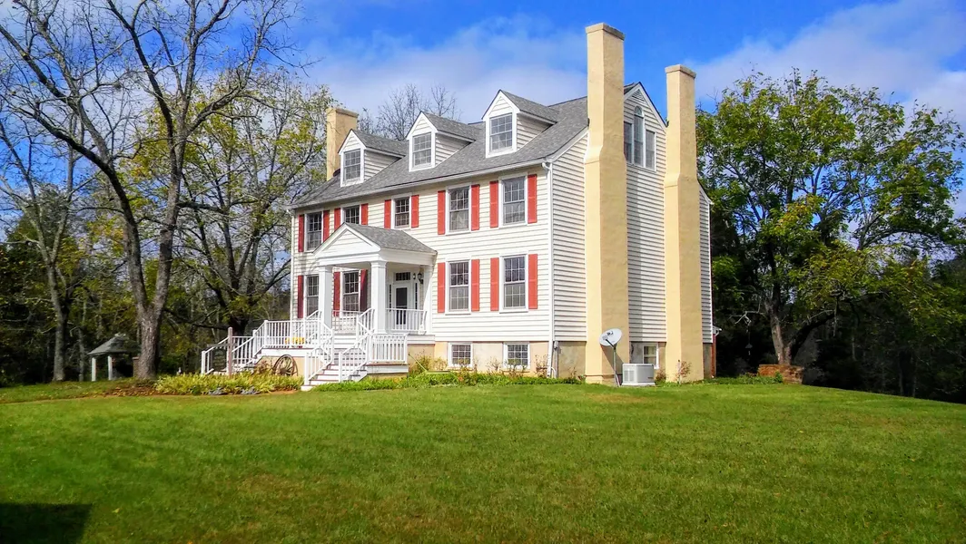 White Walnut Peace, beauty, and opportunity await you at this 3600 + sq/ft home situated on 114.40 acres. White Walnut is a large, spacious 4 level home featuring, brick end chimneys, wide longleaf pine flooring, 10 ceilings on the main floor, architectural trim on entry hall doors flying pediment style with unique turkey feather design graining. Four of the seven chimneys are lined with stainless steel. a large entertainment deck across the rear of the home (2040) with direct kitchen access. The homes attic is partially finished 1836 (2 rooms) & the English basement has a wine cellar with shelving for 1600 bottles. There are 10 acres of producing grape vines that are leased out by Cooper Vineyards (Now called 53rd Winery), which is directly across the street from White Walnut.