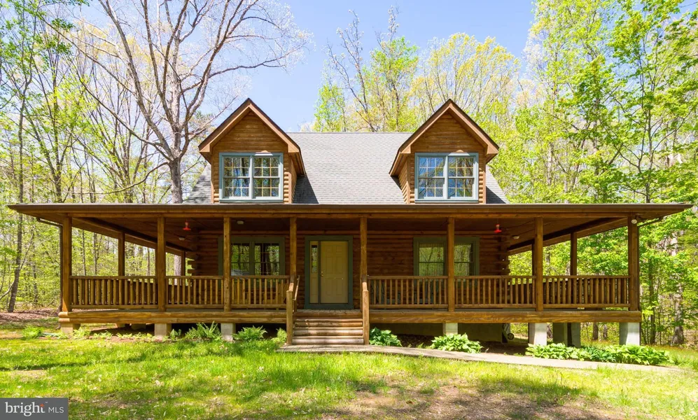 Beautiful log home built on a nearly 2 wooded acres. 3 BR 2 full BA- Cape Cod with cathedral ceilings. Dual HVAC systems. Jacuzzi in MBR. Beautiful hardwood floors throughout the house and all look brand new--barely used/occupied, Fabulous kitchen with a center island & hickory cabinets. Huge wrap around porch and lots of privacy. Access to Lake Anna Marina's boat launch. A must-see home!