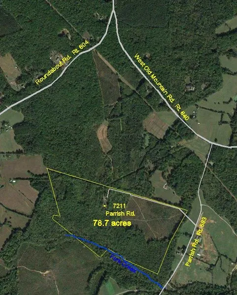 78 acres about 3 mile off I-64 Shannon Hill. About 30 min from Richmond and Charlottesville. Gently rolling land mostly wooded in hardwoods, 25 acres of planted pine. Old house on property of no value. Pole barn, well and electric on site.