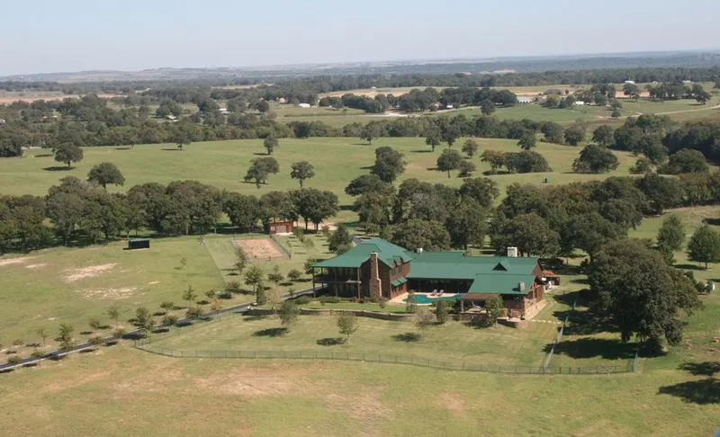 TERRY BRADSHAW QUARTER HORSES - A 750 acre showplace, equestrian breeding and training farm is located about 60 miles north of DFW International Airport. Facilities include a 4-stall stallion barn, a 20-stall show barn with attached 140X75 covered arena and a 54-stall mare barn with a breeding area, lab and beautiful office with a fireplace. Lush coastal Bermuda pastures (some irrigated), sandy loam soil and over 8 miles of pipe and cable fencing. Level to hilly terrain with 4 ponds and 3 spring-fed lakes loaded with bass and wildlife. Workers, foreman, and private main home, 6 bedrooms and 6 baths, 2 half-baths (which includes a 4BR, 4BA guest wing), 2 fully equipped kitchens, 3 fireplaces, 3 living areas, 2 dining areas, pool, fire pit, and fantastic outdoor entertaining area. Workshop, shavings/hay barn and a set of cattle working pens for owner's registered Angus herd. This is truly ...
