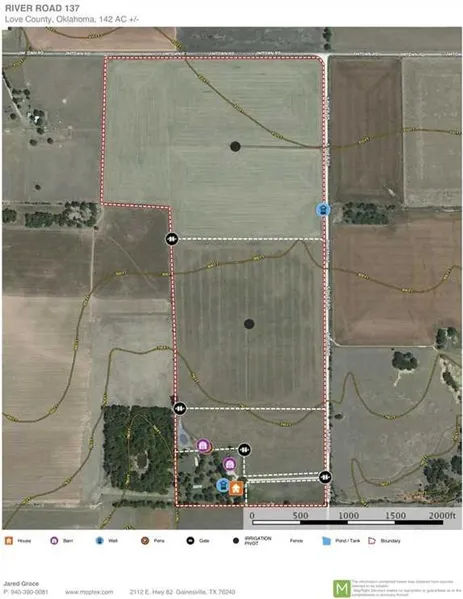 WATER: One pond, a residential water well at house, and an irrigation well that serves two center pivot irrigation units.