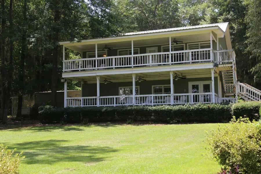 This beautiful two-story home sits on a shady lot located on the Alabama River. Upstairs has a very open floor plan with kitchen dining and living room area with numerous windows, giving a perfect view of the river. The kitchen has a nice pantry, large island with cabinets underneath and lighting overhead, a gas range and refrigerator. Tile floor throughout the home.