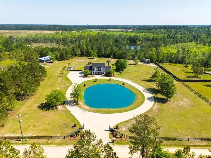 Welcome to your private slice of paradise! Nestled on 10 pristine acres, this stunning two-story luxury estate offers the perfect blend of elegance, comfort, and function. Featuring 6 spacious bedrooms, 4.5 bathrooms, and thoughtfully designed living spaces, this home is ideal for multi-generational living, entertaining, or simply enjoying serene country life in style. Step inside to find two luxurious master suites. One on the main level featuring its own bonus room, and another upstairs, accompanied by four additional bedrooms and a second bonus room perfect for a playroom, gym, or media space. The heart of this home is designed for entertaining with a gourmet kitchen, expansive living areas, and French doors leading to and showcasing the incredible backyard oasis. Enjoy year-round relaxation in the in-ground pool and spa combo, unwind around the custom firepit sitting area, or host unforgettable gatherings under the brand new 60x40 pavilion. A scenic and stocked pond adds to the property's peaceful charm and natural beauty. Additional features included, but not limited to, BRAND NEW roof, tankless water heater, security system, irrigation system (landscape lighting, pond with fountain & sprinkler system), and speaker/intercom system throughout the home. Whether you're looking for space to grow, room to roam, or a forever retreat, this rare offering checks every box. Don't miss your chance to own this one-of-a-kind luxury estate—schedule your private tour today!
