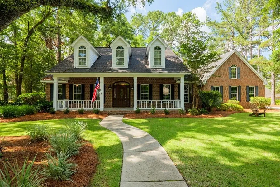 Nestled on a serene, wooded corner lot along one of the most picturesque streets in Stone Creek, this beautifully Southern Living brick home offers an open, airy floor plan with 4 bedrooms and 3 bathrooms. The home's curb appeal is unmatched, beginning with a grand mahogany front door featuring a stunning stained glass panel, leading into the expansive great room where you'll find rich wood flooring, a striking brick fireplace, custom built-ins, and soaring vaulted ceilings that create a welcoming, open atmosphere. The kitchen has been tastefully updated with abundant oak cabinetry, gorgeous granite countertops, and a stylish subway tile backsplash. The oversized island provides ample workspace, while the brand-new bar, refrigerator, and dishwasher ensure modern convenience, and a new water purification system has also been installed. Just off the kitchen, a cozy, versatile space serves as a dining room or office, offering flexibility to match your lifestyle. The master suite is a true retreat, highlighted by a trey ceiling and a spacious walk-in closet, and the en suite bath is a luxurious haven featuring dual granite vanities, a large tiled shower, and a deep whirlpool tub—perfect for unwinding after a long day. Step outside to a large screened-in porch, finished with a charming tongue-and-groove wood plank ceiling and plenty of space to relax or entertain, while an expansive open patio beyond provides the perfect spot for grilling and enjoying the tranquil, fenced-in wooded backyard. Upstairs, you'll find the fourth bedroom, which does not have a closet and could easily be used as a bonus room, media room, or flexible living space to suit your needs. With its blend of modern updates, thoughtful details, and timeless Southern charm, this home is ready to offer comfort, style, and privacy in one of Stone Creek's most desirable locations. Please visit the link for a full video tour: