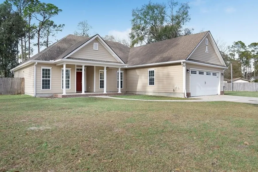 Measurements coming- Move-in ready home with rare bonus features! This freshly updated d3-bedroom, 2-bath home with 2 car garage has been recently painted and includes a new refrigerator, new bathroom sink, giving it a clean, inviting feel. Inside, you'll love the open-concept living space, beautiful tray ceilings in both the living room and primary suite, and a spacious kitchen featuring rich cabinetry and pendant lighting—perfect for everyday living and entertaining. The primary suite offers a relaxing retreat with a spa-style bathroom, including a jetted soaking tub, separate walk-in shower, and double vanities. Tray Ceilings and French doors going onto the back porch. Additional highlights include a dedicated laundry room with built-in cabinetry for extra storage and convenience. Step outside to enjoy the covered back patio with ceiling fan and French doors, ideal for grilling, relax...