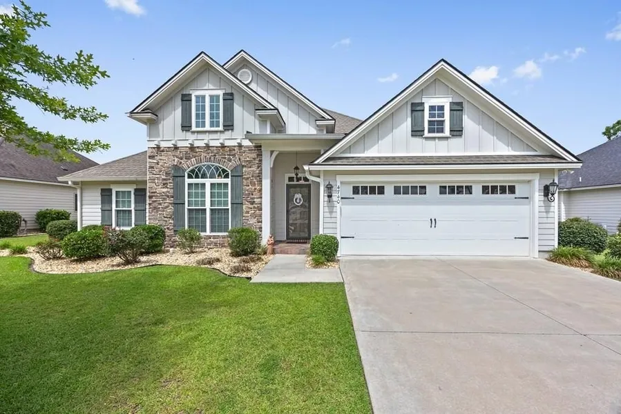 S0UGHT AFTER GROVE POINT SUBDIVISION! This family friendly neighborhood has a pool, walking track, and golf cart-friendly streets, basketball court and new pickle ball courts. The home feels practically brand new, with granite countertops in the kitchen and baths, beautiful hardwood floors, and custom touches like coffered ceilings. This large chef's kitchen is waiting for you! The flexible office is perfect for play room or a quiet home office. The large primary suite offers a luxurious bathroom featuring double vanity, a soaking tub, and a walk-in shower. The backyard retreat you'll love with the screened-in patio for relaxing or entertaining, plus a custom-built outbuilding that matches the home and adds plenty of extra space. Call today for your private tour of a like new home!