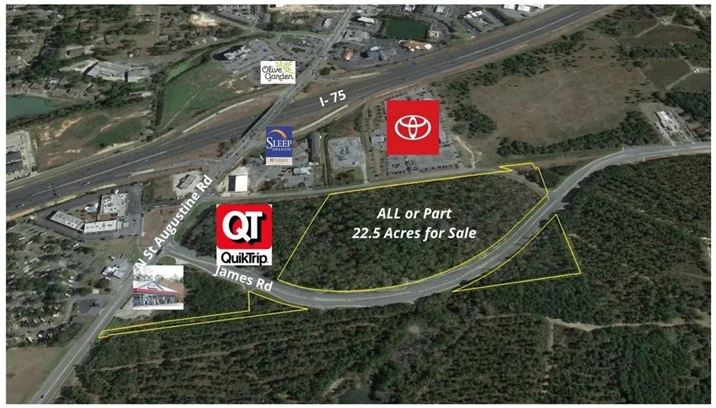 ALL OR PART! 22.5 Acres of Prime Commercial Property just off I-75 at exit 18. Located in between James Rd and James Circle with over 4000 ft of road frontage. Located only 1.5 miles from the Southbound offramp and next door to Quick Trip which is currently under construction. Water and sewer available to site, Curb cut in place and median cut already in place. Additional 1.93 Acres available across from this lot.