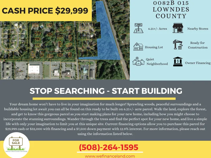 Owner Financing Available. Current financing options allow you to purchase this parcel for $29,999 cash or $32,000 with financing and a $7,500 down payment, monthly term options are:
