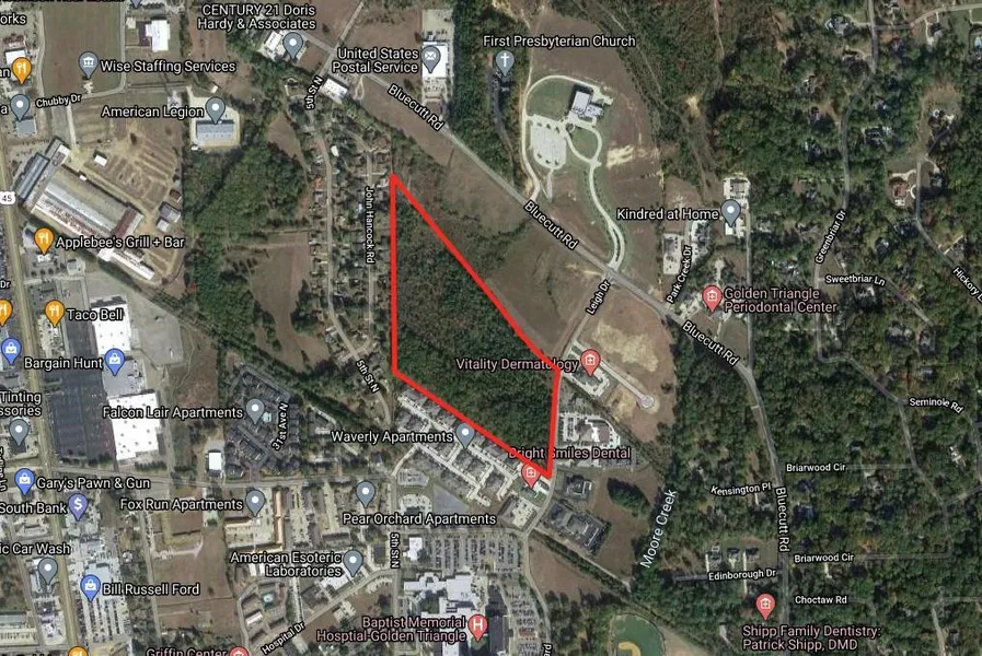 The Leigh site includes 24.9 acres with approximately 700 feet of frontage on Leigh Drive, an upscale commercial thoroughfare. This level, wooded site has great access to utilities and is less than 300 yards from Baptist Memorial Hospital. The location and physical characteristics of this tract make it very attractive for development. This property has good drainage and is not located in a flood zone.